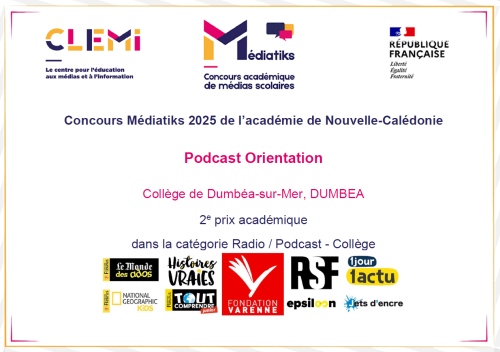 Nous sommes très fiers d’avoir remporté le 2ème prix du Concours Mediatiks dans la catégorie radio-podcast, pour le travail réalisé par les élèves de la classe de 302 prépa-métiers de 2024.