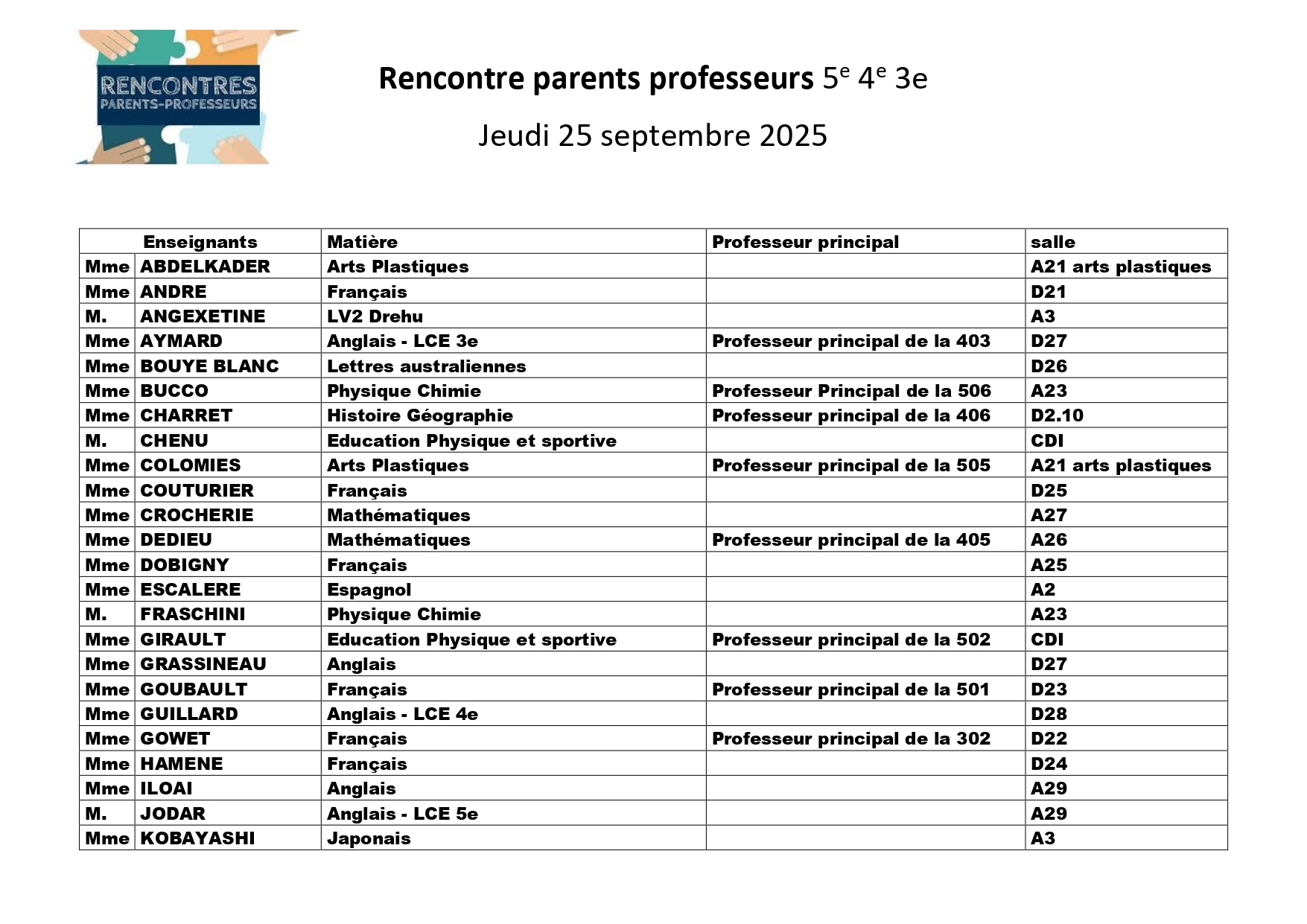 Pas de prise de rendez-vous: vous pourrez vous présenter directement dans les salles où se trouvent les enseignants de vos enfants.
