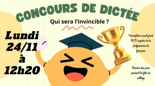Merci de te faire connaître auprès de ton professeur de français avant le jeudi 20 novembre inclus. 🏆🏆