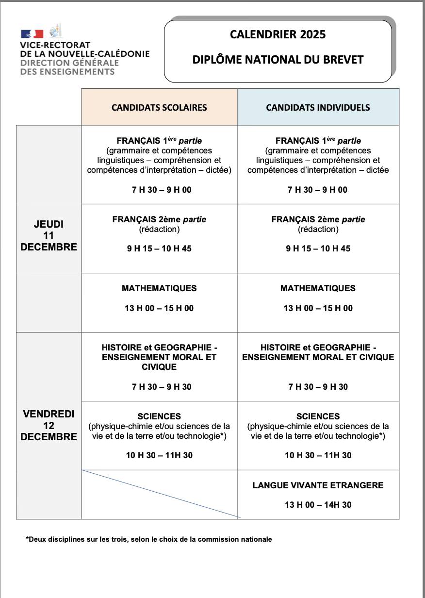 📝Jeudi 11 et vendredi 12 décembre 2025 auront lieu les épreuves écrites du DNB pour nos élèves de 3èmes. (partie gauche de l’image)