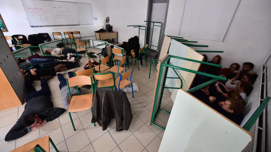 Cet exercice a pour objectif de sensibiliser les élèves et les personnels aux bons réflexes en cas de situation exceptionnelle, notamment apprendre à se mettre en sécurité et à se cacher rapidement dans les salles si cela devait être nécessaire.
