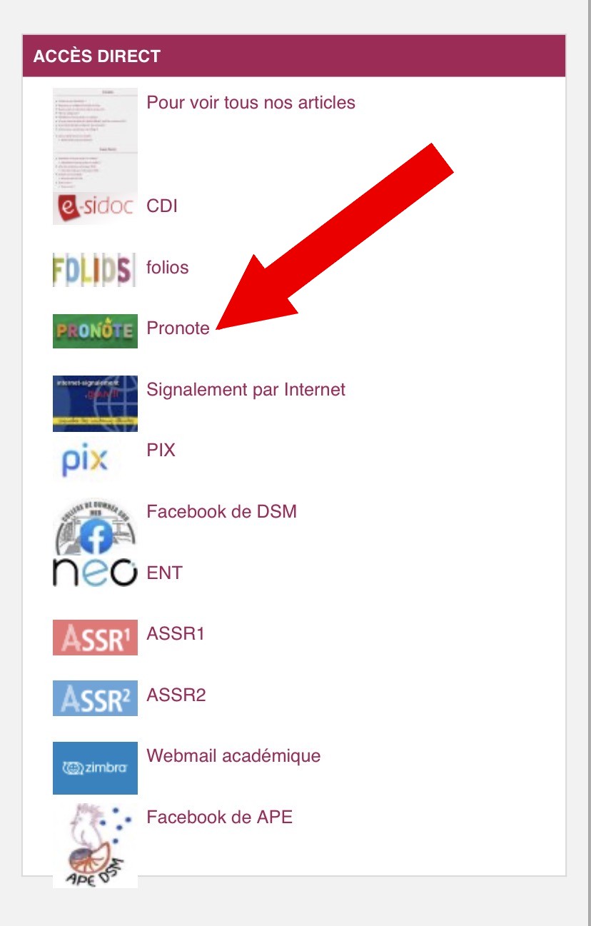 Pronote : pour vous connecter par le site du collège ?