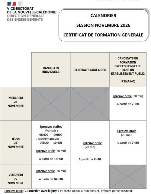 calendrier CFG session novembre 2026